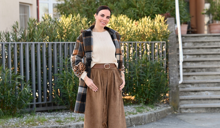 Žamet ima v sebi nekaj skoraj nostalgičnega, a hkrati izjemno sodobnega. Tokrat sem izbrala žametno krilo v topli rjavi barvi, ki deluje kot popolna osnova garderobe.