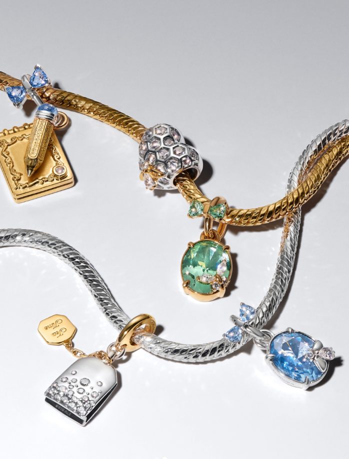 Kolekcijo zaznamujejo simbolični motivi: čebele, metulji, pentlje in cvetlice, vsak s svojo zgodbo, globoko zakoreninjeno v svetu Bridgertona. Posebno pozornost pritegnejo čari, ki so postali zaščitni znak znamke: obeski z regentsko plesno kartico in svinčnikom ali celo kristalni čajnik, ki bi bil vreden trača Lady Whistledown.