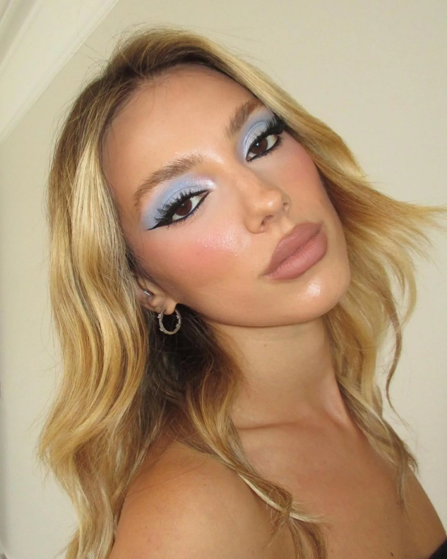 Navdušenje nad modrim senčilom se je hitro preselilo tudi na rdeče preproge. Igralke in modne zvezde ga nosijo v lahkih, prosojnih nanosih, ki delujejo sveže in elegantno. Pogosto je navdih za tak videz tudi obleka ali celoten stajling, saj modri odtenki ustvarijo harmoničen, skoraj ledeno svetleč učinek.