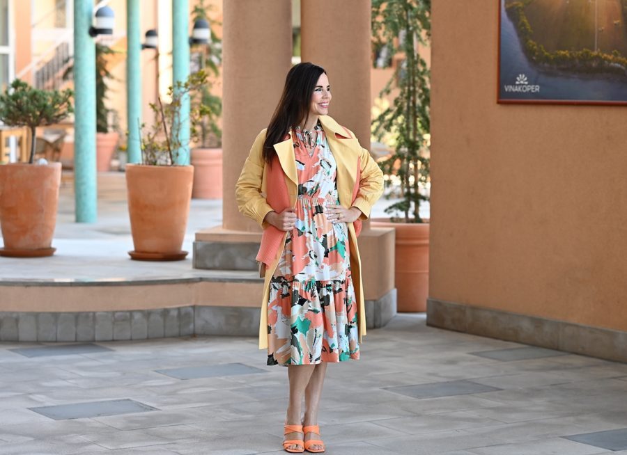 Današnji stajling dneva zaznamuje dolga lanena obleka v oranžni barvi – lahkotna, zračna in izjemno poletna.