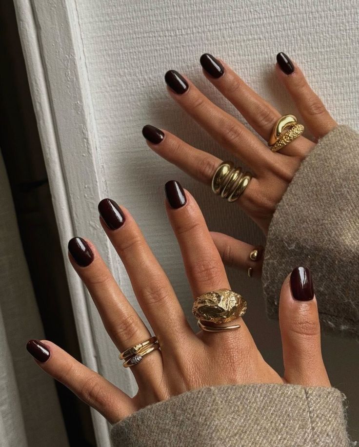 Velika prednost bordeauxa je njegova univerzalnost. Ta barva lepo poudari roke, deluje izjemno elegantno in se odlično ujema z minimalističnim stilom, ki je trenutno zelo prisoten v modi. Manikura v tem odtenku je lahko popolnoma klasična – enobarvna in sijoča – ali pa nekoliko bolj kreativna. Stilisti predlagajo: