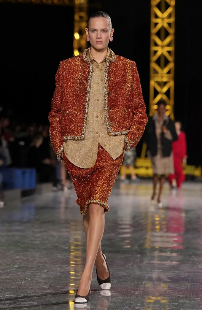 Ob oblekah za večerne priložnosti so bili značilni Chanelovi tailleurji ponovno interpretirani z modernimi materiali in kovinskimi nitmi, kar je klasičnemu tvidu vdihnilo novo energijo. Kolekcija vključuje tudi bolj casual kose, ki sledijo sodobnim trendom in omogočajo praktičnost, kar odraža vizijo garderobe za moderno žensko.