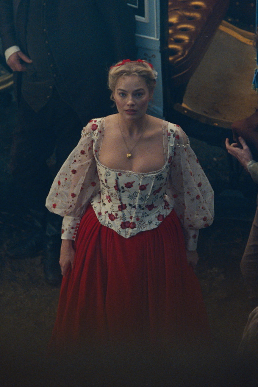Pri promociji filma se je Margot Robbie odločila za silhuete, ki poudarjajo ženstvenost, a obenem nosijo dramatičen naboj. Črna čipka, strukturirani korzeti, dolge padajoče linije in subtilni viktorijanski detajli ustvarjajo občutek zgodbe – kot bi z rdeče preproge stopila naravnost na vetrovne planjave Yorkshira.