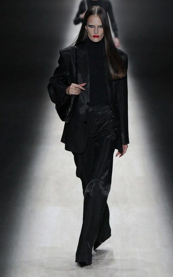 Na pisti so se prepletali različni arhetipi: glamurozna ženska, urbana “party girl”, poslovna eleganca in sproščeni streetwear. Kolekcija je namerno združevala nasprotja — sensualnost in pragmatičnost, luksuz in vsakdan, preteklost in prihodnost.