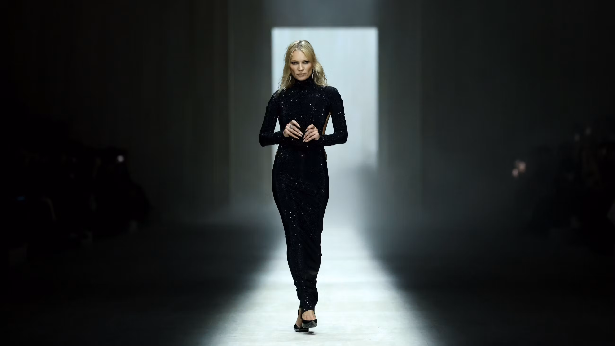 Demna je svojo prvo kolekcijo zgradil tudi skozi casting — in prav ta je postal ena ključnih modnih izjav večera. Na pisti so se pojavile supermodeli in sodobne modne ikone: od Emily Ratajkowski do Karlie Kloss, Elsa Hosk in novih obrazov generacije Z. Vrhunec večera pa je pripadel eni sami osebi: Kate Moss. Supermodel, ki je zaznamoval devetdeseta leta in dolgo zgodovino znamke Gucci, je zaključila revijo v bleščeči večerni obleki z odprtim hrbtom, ki je razkrival ikoničen Gucci thong — neposreden poklon estetiki, ki je nekoč redefinirala modno provokacijo. Ta zaključek ni bil naključen. Bil je simboličen most med preteklostjo in novo identiteto znamke.