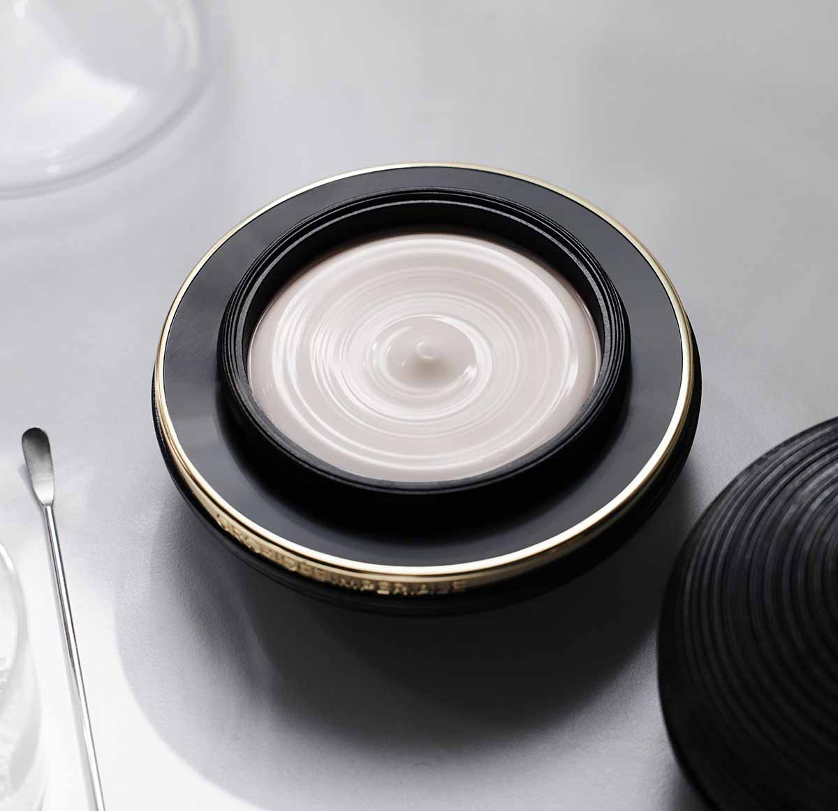3. Luksuzna embalaža: Krema je shranjena v porcelanasti posodi, ki jo ročno izdeluje francoska hiša Maison Bernardaud. Embalaža vključuje 24-karatni zlat detajl in je zasnovana kot umetniško delo.