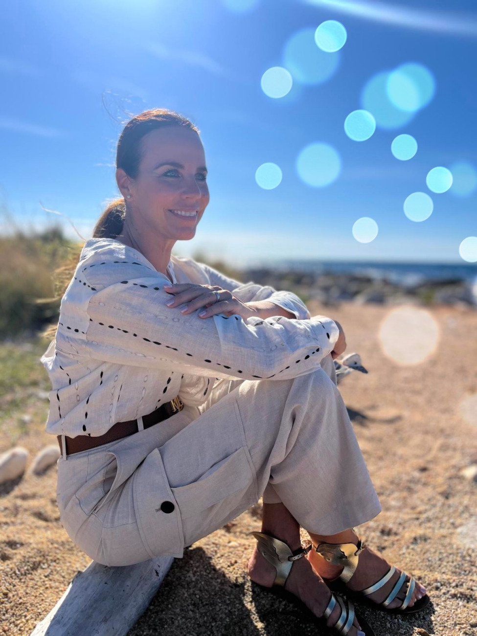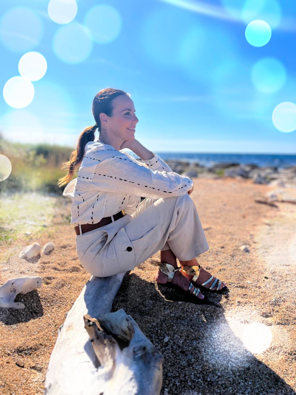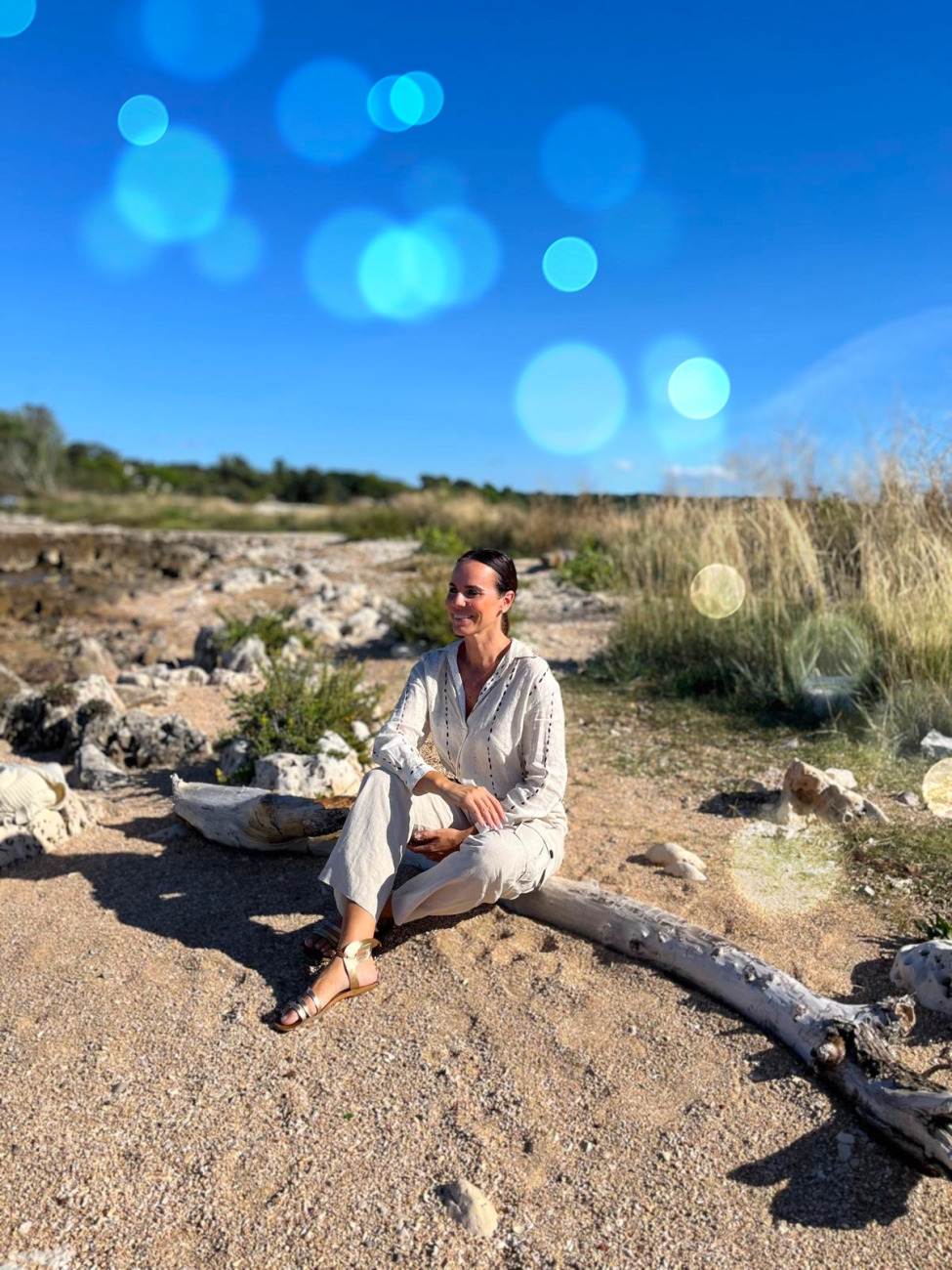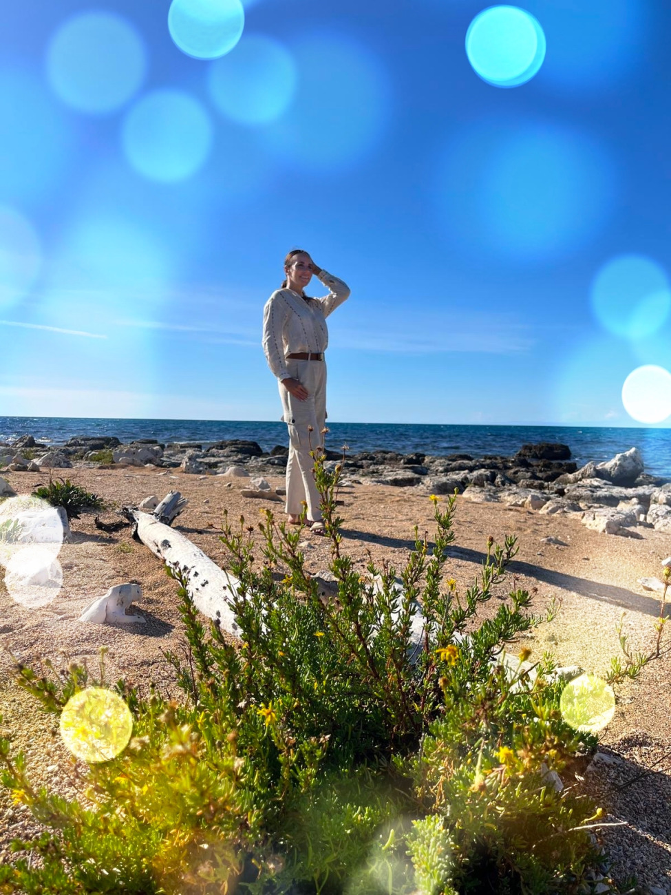 Na plaži čutim, da se svetloba preliva tudi vame. Moja duša je mirna, kot bi se povezala z morjem, s tem zlatim soncem in s peskom pod nogami. Vse, kar me običajno teži, se v tem trenutku raztopi – kot sol v vodi. Ostane le hvaležnost. Za dan, za sebe, za to čudovito naravno igro, ki se zgodi ravno zdaj.