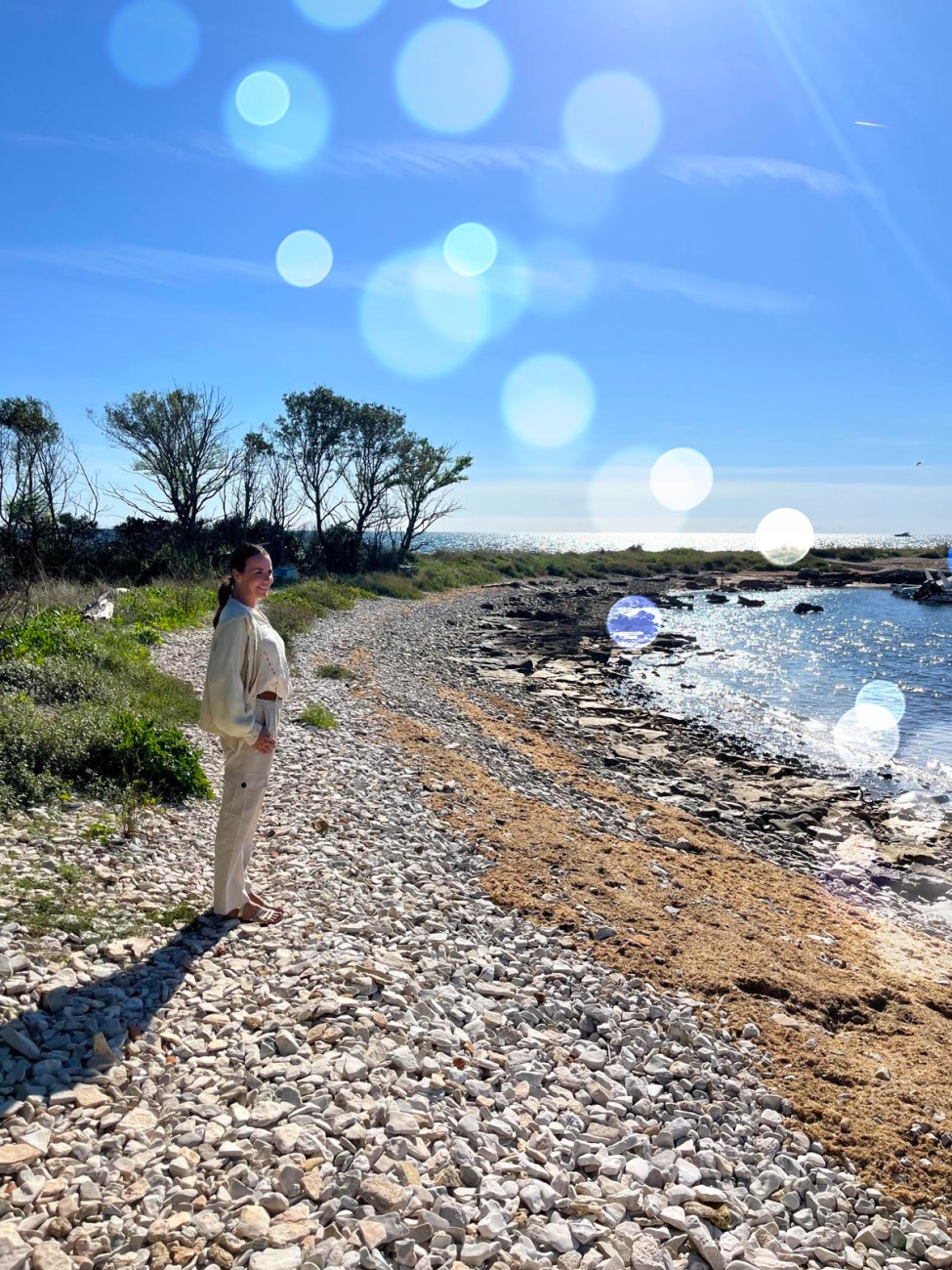 Indijansko poletje je darilo, ki ga ne moreš načrtovati. Samo pride, se usede poleg tebe in ti reče: Tu sem. Zdaj uživaj. In res, tukaj v Svetem Ivanu, ob morju, ki tiho pljuska, v soncu, ki se nikamor ne mudi, uživam. Čisto. Zlato v laseh, mir v duši.