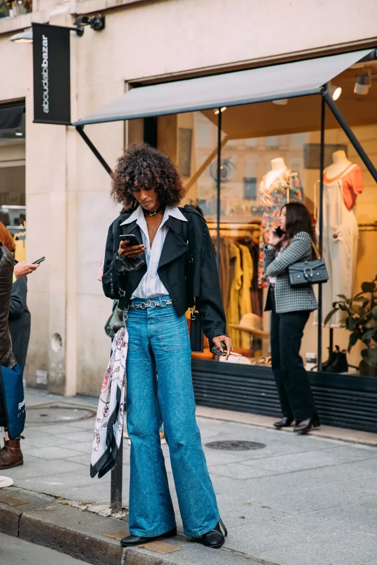 - Široke kavbojke in trenč