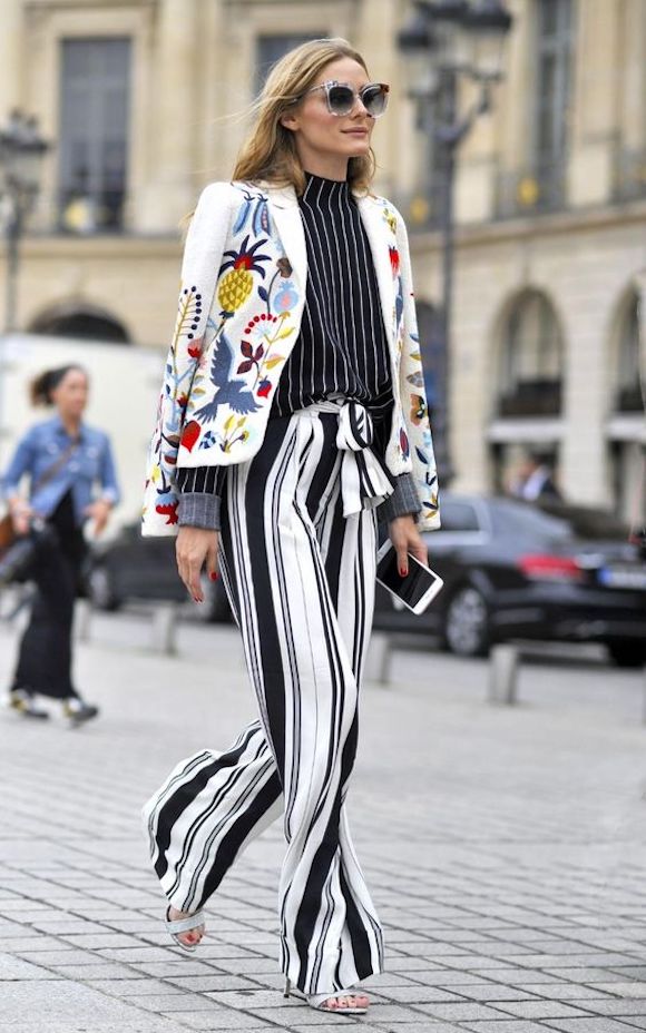 Vertikalne črte. Jasno je, da črte podaljšajo nogo, a se tukaj porodi druga težava, in sicer kakšne črte. Namreč niso vsi modeli primerni za vse ženske in nekatere hlače na črte delujejo kot pižama, ker je lahko zabavno in modno, a ne v vseh primerih ter za vsako priložnost. Izberite torej debelejše črte in mehke kroje, višji pas in nujno visoke pete. Trend narekuje tudi črte s črtami, kar odlično interpretira Olivia Palerno, ki je, mimogrede, nižje rasti; samo poglejte, kako vrhunsko deluje!