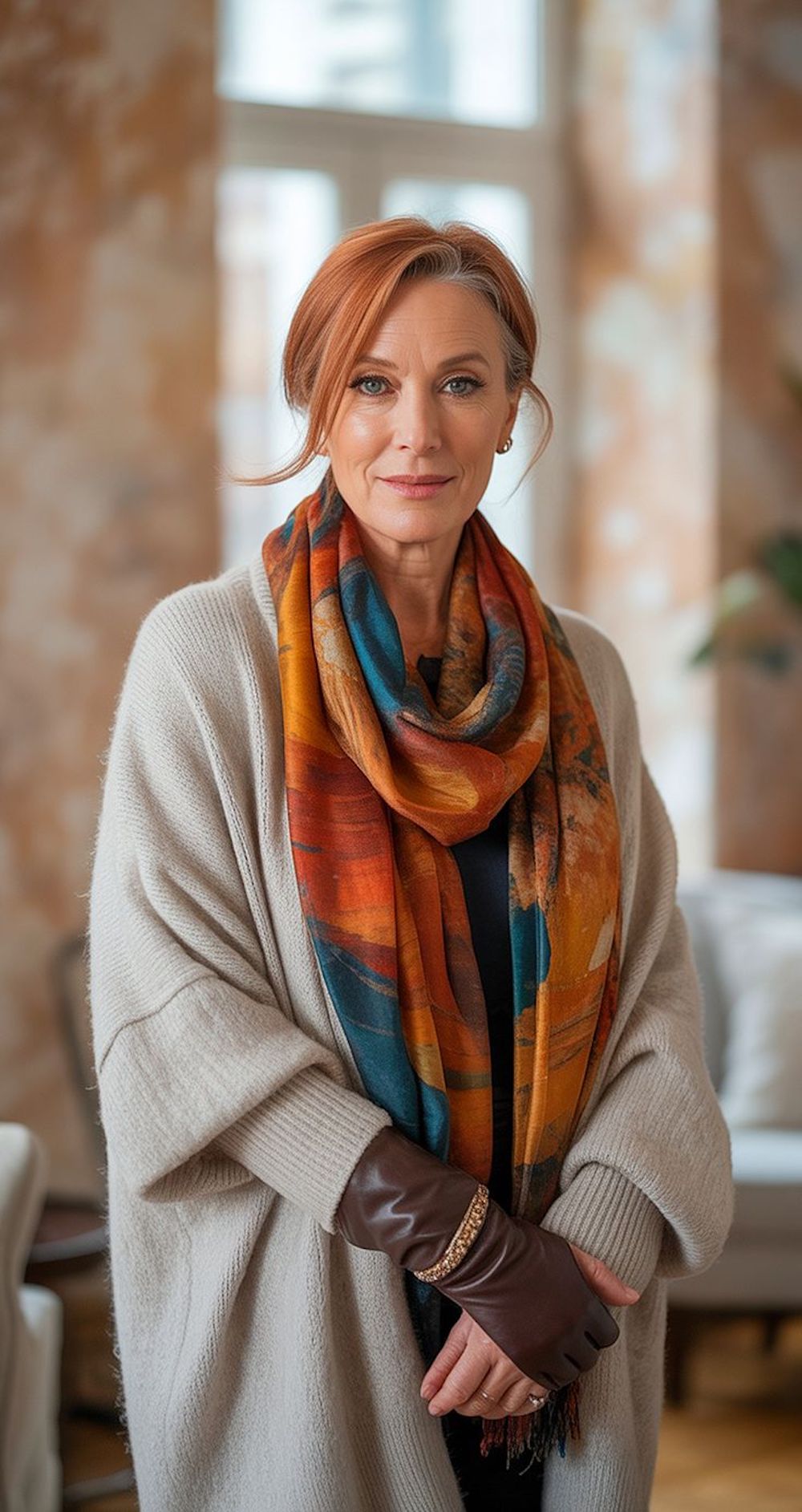 Barve niso le estetika — govorijo s kožo. Ne gre za to, da bi morali nositi pastelne odtenke ali se izogibati črni. Gre za to, kako barva obliče obraz, kako poudari energijo in vitalnost. Tople, svetle barve ob obrazu dajejo svežino, nevtralni odtenki ustvarjajo harmonijo, temnejši odtenki pa jih je treba uravnotežiti s svetlimi dodatki ali šalom.