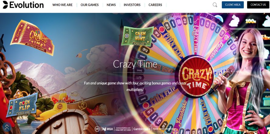 Popularni igralni šov Crazy Time od ponudnika Evolution nudi visoke množitelje in kar štiri posebne mini igre