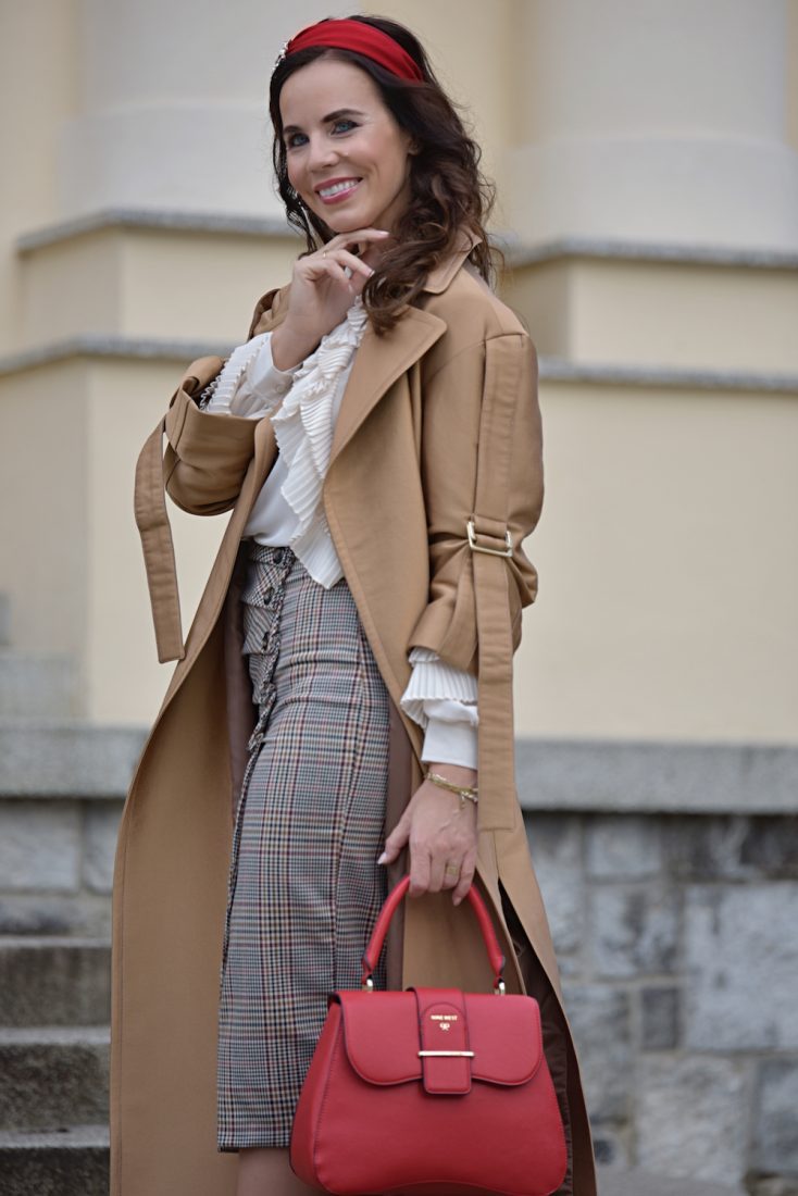 - Karo plašč kot statement kos. Eden mojih absolutnih favoritov. Ko nosim karo plašč, je celoten videz že dodelan in ne potrebuje dodatkov.