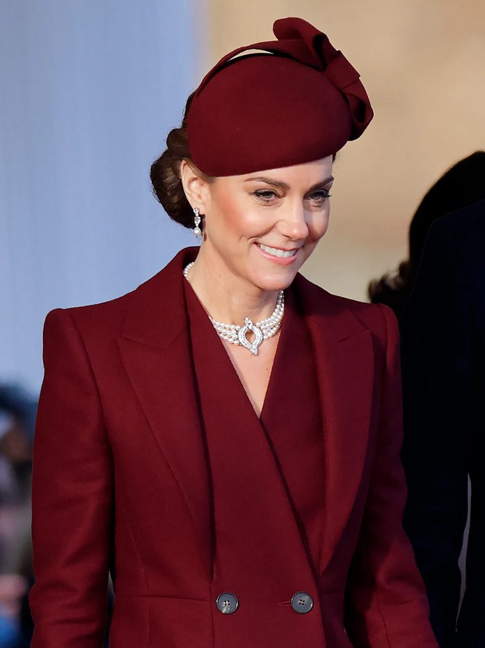 Kate še naprej uporablja široko paleto barv, vendar z večjo pozornostjo do detajlov in dodatkov. Njeni modni dodatki, kot so klobuki, torbice in nakit, so skrbno izbrani, da dopolnjujejo njen videz in poudarjajo njeno eleganco. Na primer, med božičnim koncertom je nosila rdeč plašč Alexander McQueen, ki ga je kombinirala s karirastim krilom Emilia Wickstead in črnimi škornji Ralph Lauren, kar je ustvarilo praznično in elegantno podobo.