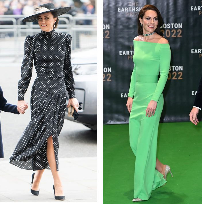 Kate je v preteklosti pogosto nosila midi obleke z vzorci, vendar je v zadnjem času te zamenjala z elegantnimi hlačnimi kostimi in suknjiči. Ta sprememba poudarja njeno zavedanje o resnosti in odgovornosti, ki jih prinaša njena prihodnja vloga. Na primer, med obiskom družbenega centra v Bracknellu je nosila sivo obleko znamke Cefinn, znane po poslovni eleganci.