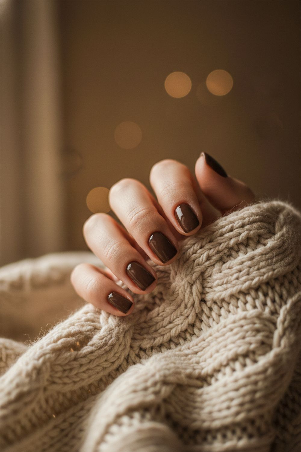 Za manikiro stoji nail artistka Imarni, ki je na Instagramu delila fotografije iz serije in jih pospremila z zgovornim opisom: “Super Chic Short Squared Chocolate Nails”. Reakcija? Kolektivno navdušenje. Komentarji, delitve, shranjevanja – in nova obsedenost je bila rojena. Rjava barva, še posebej v čokoladnih, toplih odtenkih, se popolno ujema z zimsko estetiko: je elegantna, globoka, sofisticirana in hkrati neverjetno moderna. V kombinaciji s kratko dolžino deluje še bolj prefinjeno.