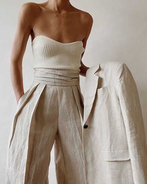 - Kombinacija s suknjičem – Za prehodni čas, ko potrebujete nekoliko več toplote, lahko lanene hlače oblečete s suknjičem. Takšna kombinacija bo odlična za pisarniške dni ali formalnejše priložnosti, ko želite ostati elegantni, a hkrati udobni.