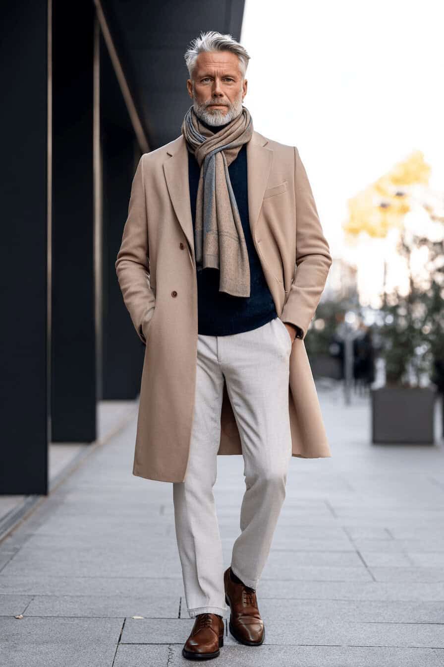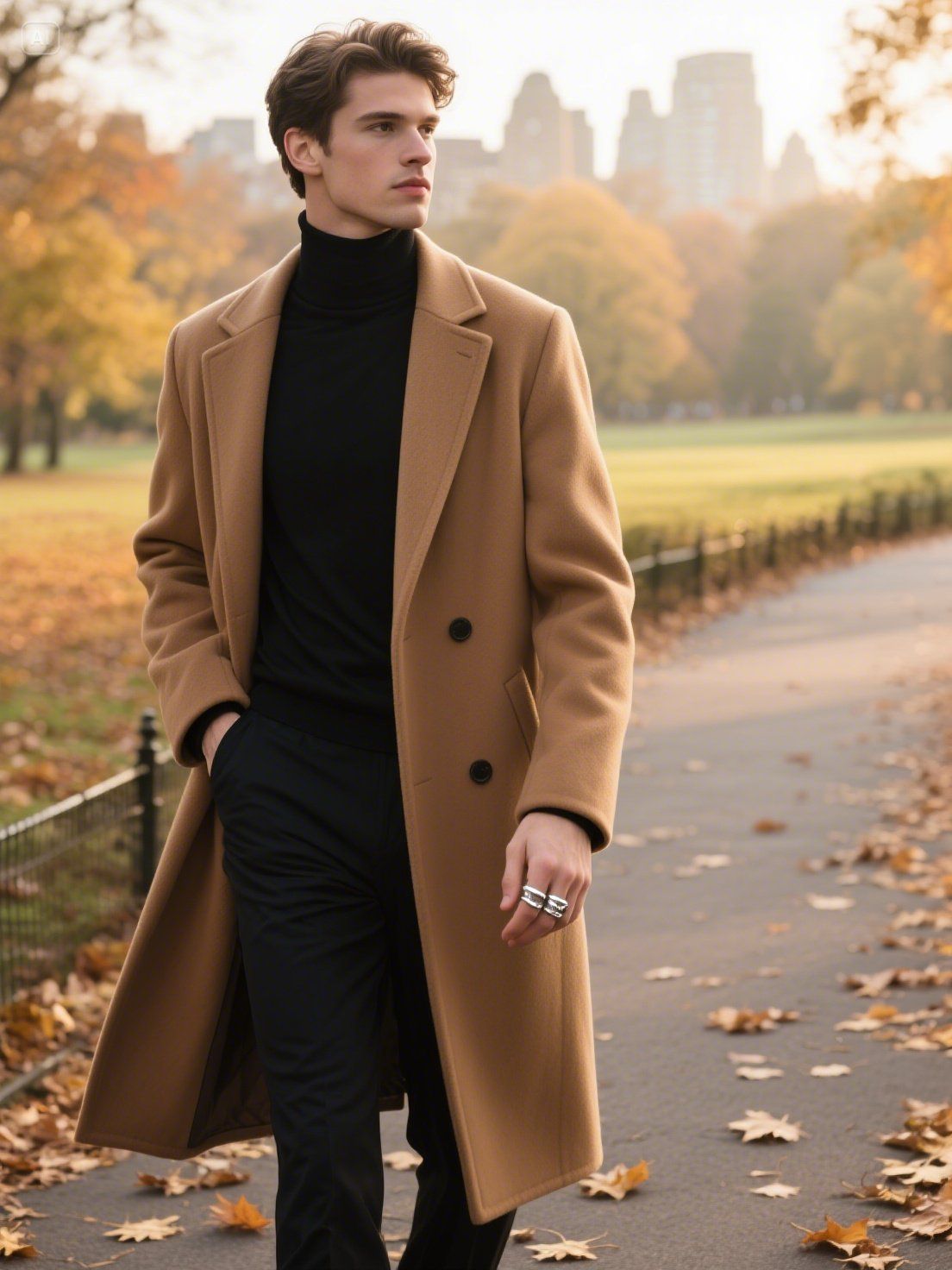 Ključ novega minimalizma so odlični materiali. Volna, kašmir, težji jersey, mehka bombažna rebra in čiste pletenine postanejo osnovni gradniki garderobe. Moški plašč, ki je popoln in krojen poenostavljeno, brez odvečnih detajlov, a iz tkanine, ki že na pogled deluje prestižno. Tudi pulover ni več le kos, ki ga oblečemo za toploto — je element osebnosti, najboljše različice moškega minimalizma, še posebej v nevtralnih tonih peska, sive, čokolade in temno modre.