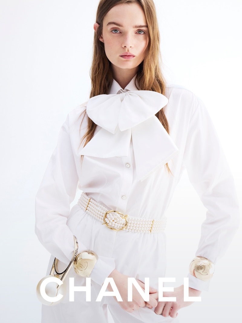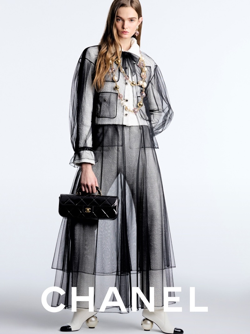 Model Lulu Tenney je tokrat glavni obraz jesensko-zimske kampanje modne hiše Chanel, kjer tudi to sezono ne manjka lepot biserov, tančic in tvida.