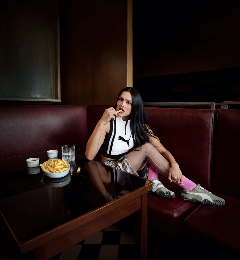 Športna znamka Puma pa v novi kampanji Mostro tokrat izpostavlja posebni model superg, katere razkazuje vse popularnejša Amelia Grey.