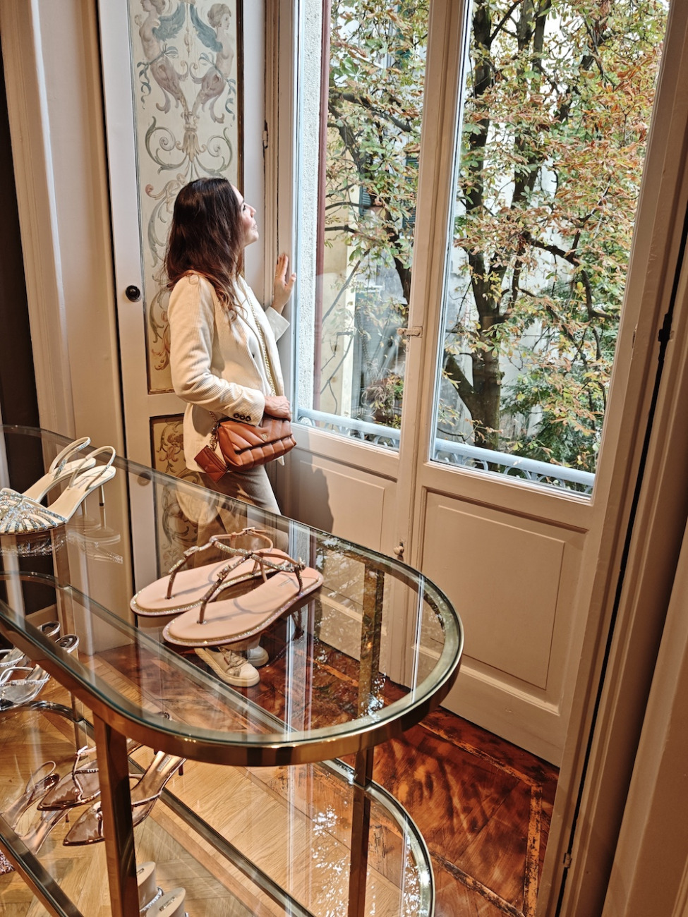 Milano je bil te dni prepojen z dežjem – vlažen, skoraj melanholičen, bližje zimskemu februarju kot jesenskemu septembru. In vendar ravno v tem kontrastu tiči njegova moč: mesto, ki vlaga vklesano v arhitekturo, refleksije luči na mokrem kamnu in neprekinjen vrvež mode spremeni v oder, kjer vsaka kaplja dežja učinkuje kot zavesa pred novo sceno.