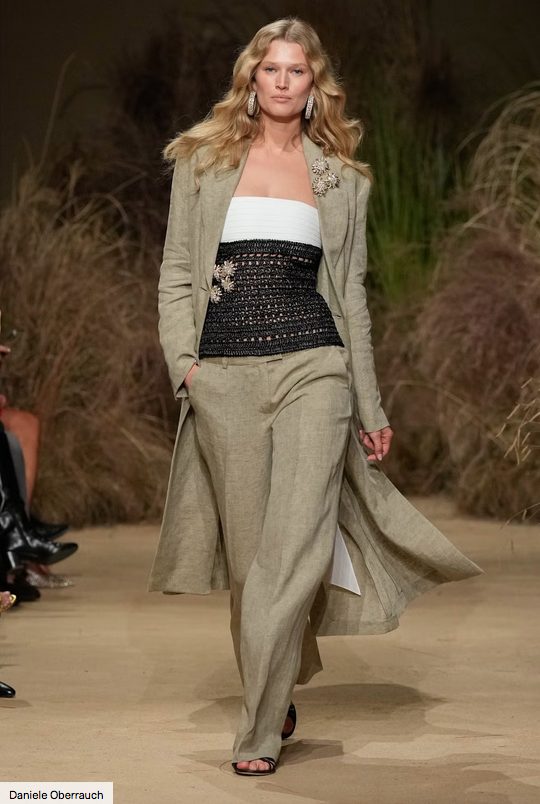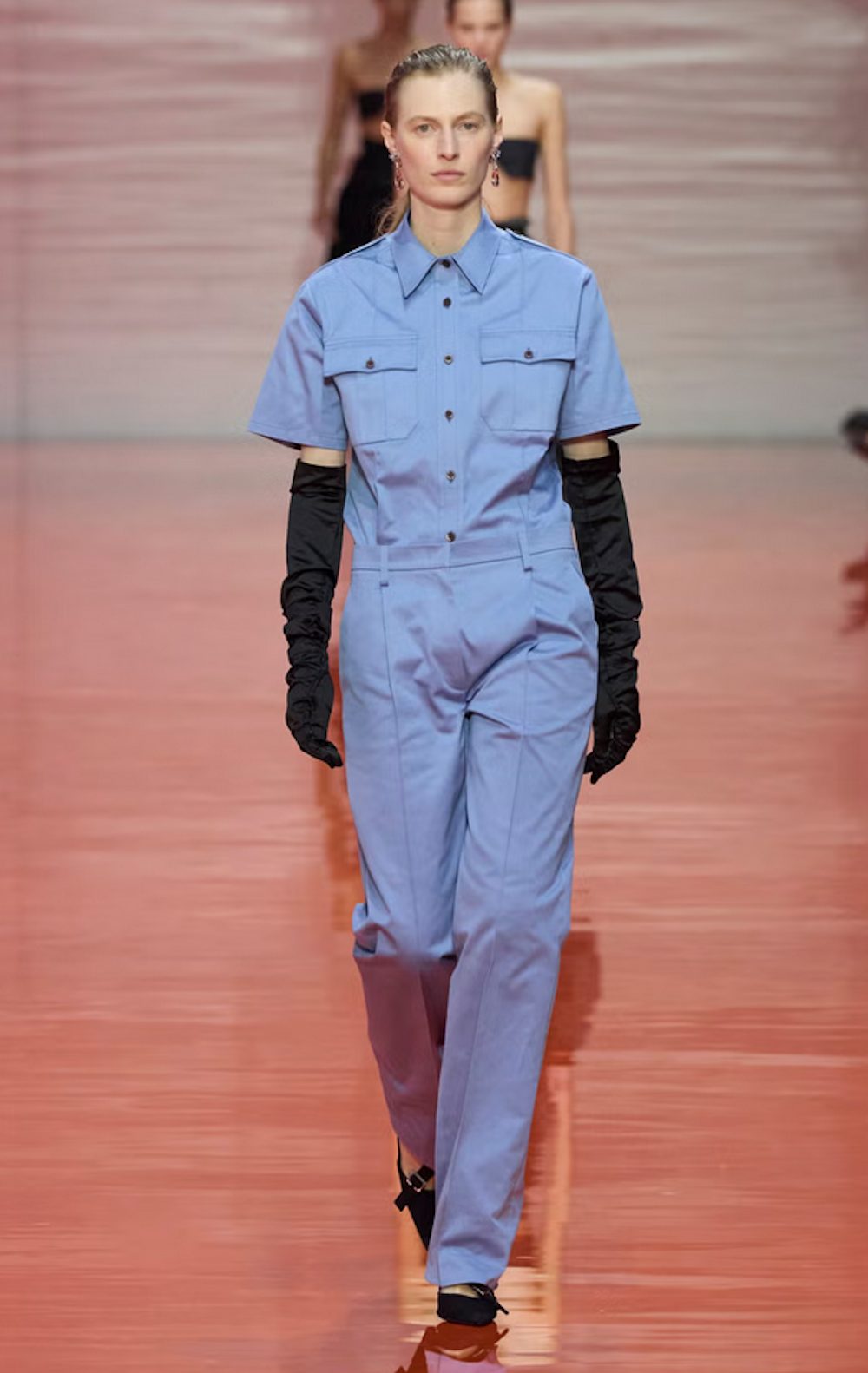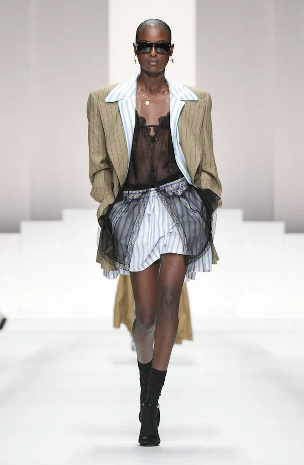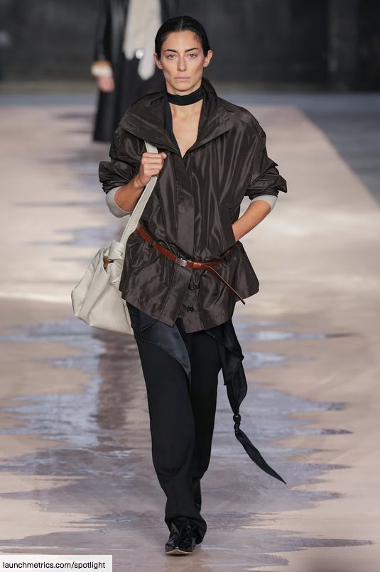 Milano ni nikoli zgolj kulisa, ampak neizogiben soigralec.Kolekcije za pomlad/poletje 2026 so razgrnile svoje lastne pripovedi: materiali so se bohotili v lahkotnih, skoraj pižama silhuetah, a obenem podprti s strogostjo konstrukcije – jasne linije, grafični prerezi, kontrastni poudarki. Pastelne tone so rezale čuteče bež in karamelne sence, mestoma naglašene s temnejšimi vložki. Kot bi oblikovalci na novo iskali ravnotežje med intimo in monumentalnostjo – občutjem, da krhkost in moč nista več nasprotnika, temveč sopotnika.