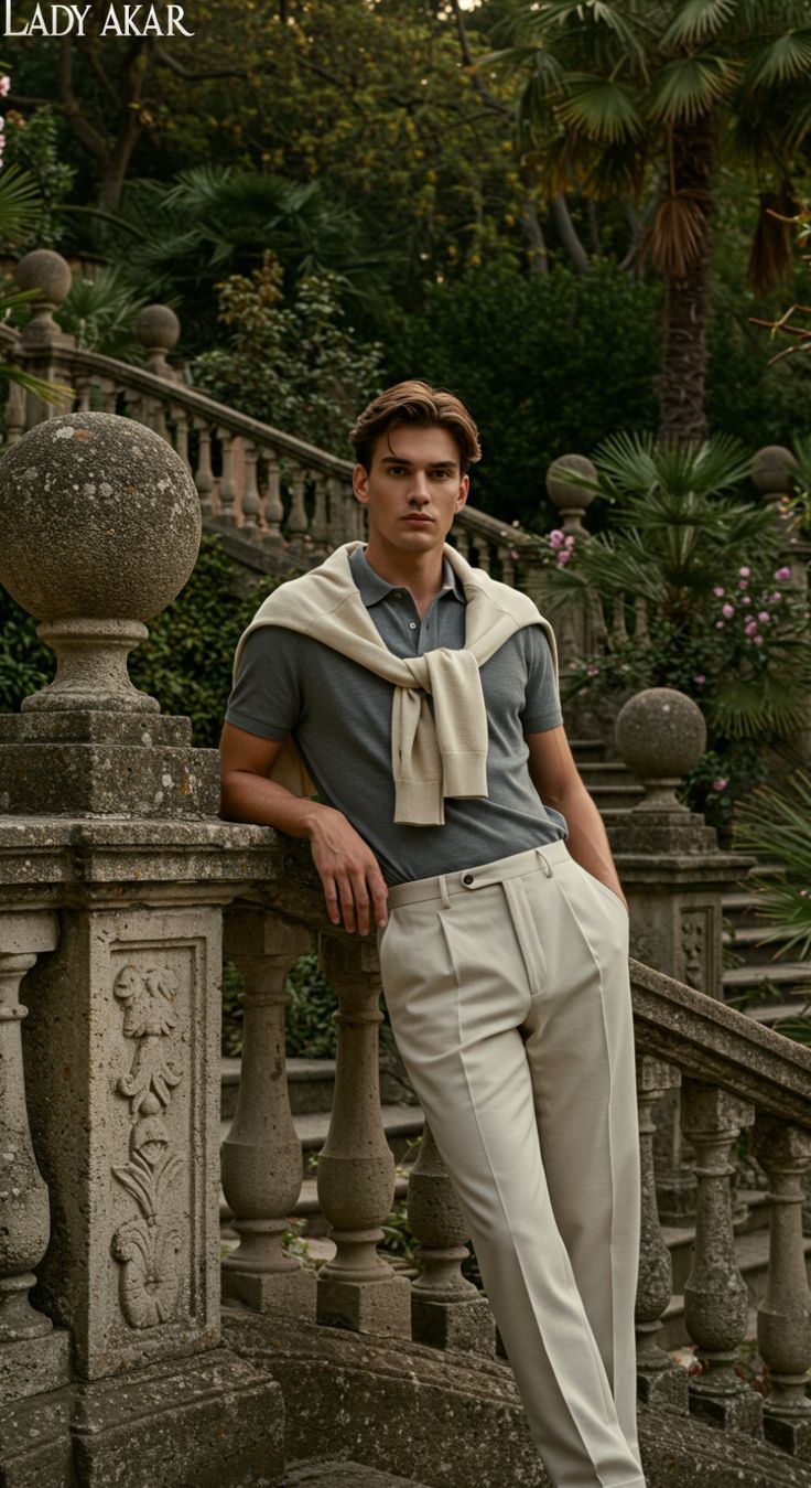 Pomlad prinaša močan vpliv preppy in vintage estetike, ki jo oblikovalci reinterpretirajo za sodobnega moškega. Gingham in preproste kratke srajce prihajajo v ospredje kot alternativa minimalističnim osnovam, pogosto v kombinaciji z ozkimi športnimi hlačami in blazerji za svež preplet formalnega in casual videza. Narašča zanimanje tudi za naključne puloverje in lahke pletene srajce, ki se elegantno zlijejo z modernimi kroji jeansov ali chinos hlač.