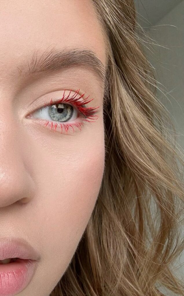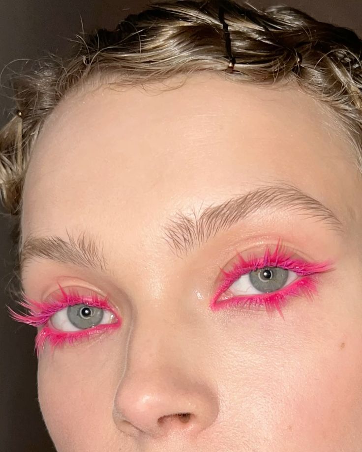 Po obdobju minimalističnega ličenja, kjer je vladal “clean girl” videz, se estetika ponovno odpira. Ličenje oči postaja bolj ustvarjalno, bolj osebno in manj pravilno. Obarvana maskara se popolnoma ujema s tem premikom – je hiter, enostaven in zelo učinkovit način, da spremenimo izraz obraza brez kompleksnih tehnik. Prav zato jo vidimo tudi na modnih pistah pomlad–poletje 2026, kjer se barvne trepalnice pogosto pojavljajo v kombinaciji z nežnimi senčili ali popolnoma čistimi vekami, da pride barva še bolj do izraza.