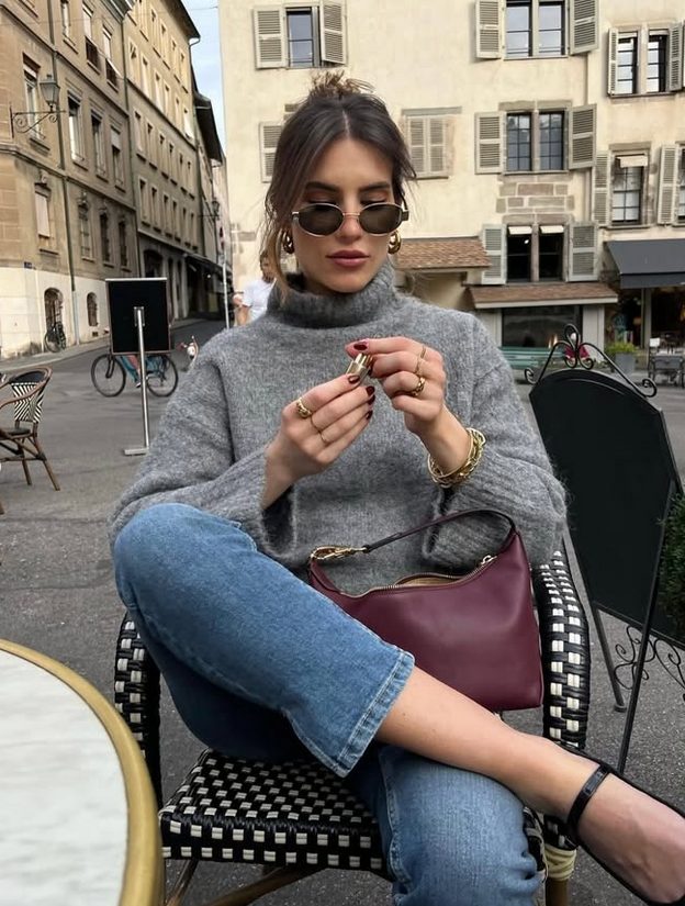 Siva je ena tistih nevsiljivih barv, katere priljubljenost iz sezone v sezono zelo niha. Tokrat jo znova ljubimo, predvsem ob grozdnato rdeči. To je lepo skladje marsikatere zimske podobe, sploh tiste udobnejše, casual, kjer ne manjka pletenin in semiš usnja.