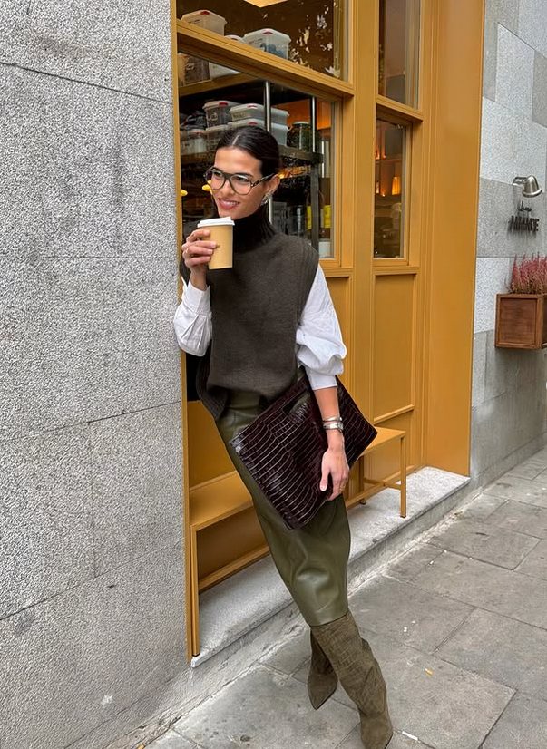Predvsem gre tu za temnejše, utišane odtenke, kot so kaki ali žajbljevo zelena. Vinsko rdeča daje v kombinaciji z zeleno poudarek naravnega izgleda, zato je še kako priljubljena pri dnevnih stajlingih. To je duo sodobnega podeželjskega stila, ki se je v tej sezoni vsekakor preselil tudi na ulice mesta.