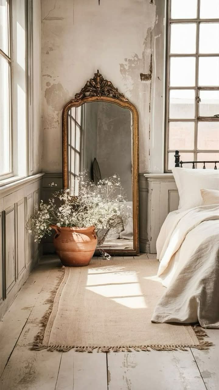 - Nasproti okna: Ogledalo, postavljeno nasproti okna, ujame naravno svetlobo in jo razprši po prostoru.
