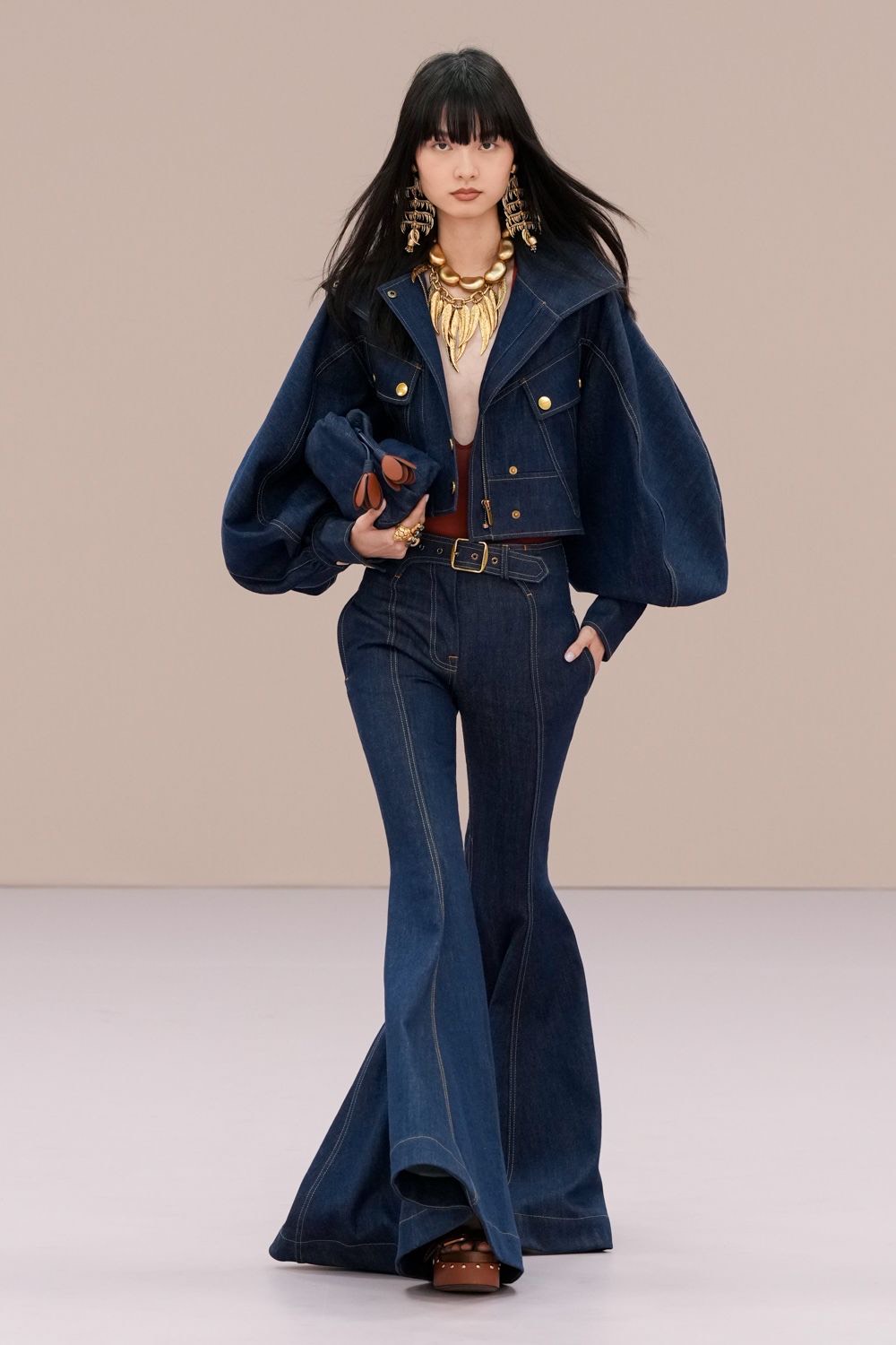 Občutek sedemdesetih let, s kapami, čipkami in lahkotnimi plašči, je povezan z današnjim ritmom – za žensko, ki se ne odreka lepoti, a potrebuje praktičnost. To je bila Chloé, ki diha preteklost in gleda naprej.