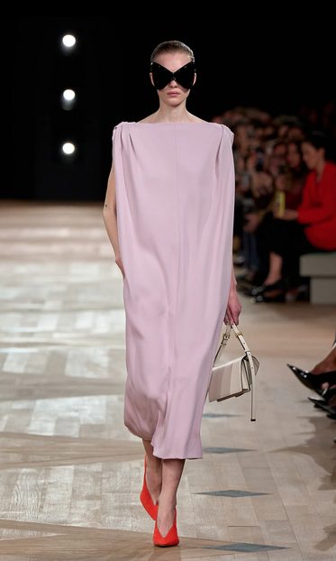 Piccioli se je poklonil arhivom in legendarni “sack dress” silhueti Cristóbala Balenciage, a ji vdahnil sodobno dušo: čiste linije, volumni, prefinjeni detajli. Kolekcija je delovala zadržano, a z močnim emocionalnim nabojem. Barve so bile plemenite – vino, žajbelj, sivina, črnilo – vsak ton je imel namen.