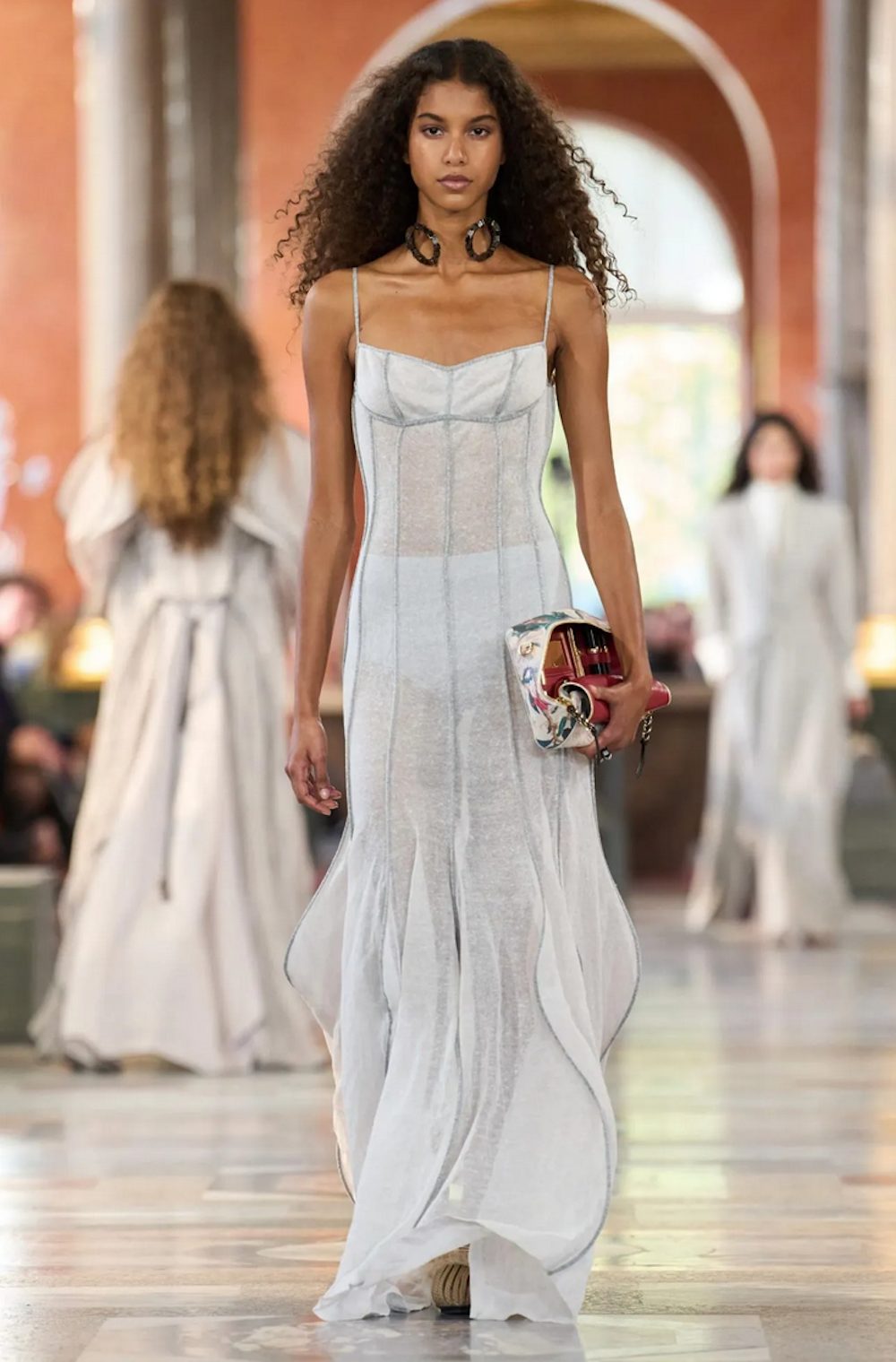 - Prosojnost: lahkotni materiali, ki razkrivajo silhueto telesa, poudarjajo senzualnost.