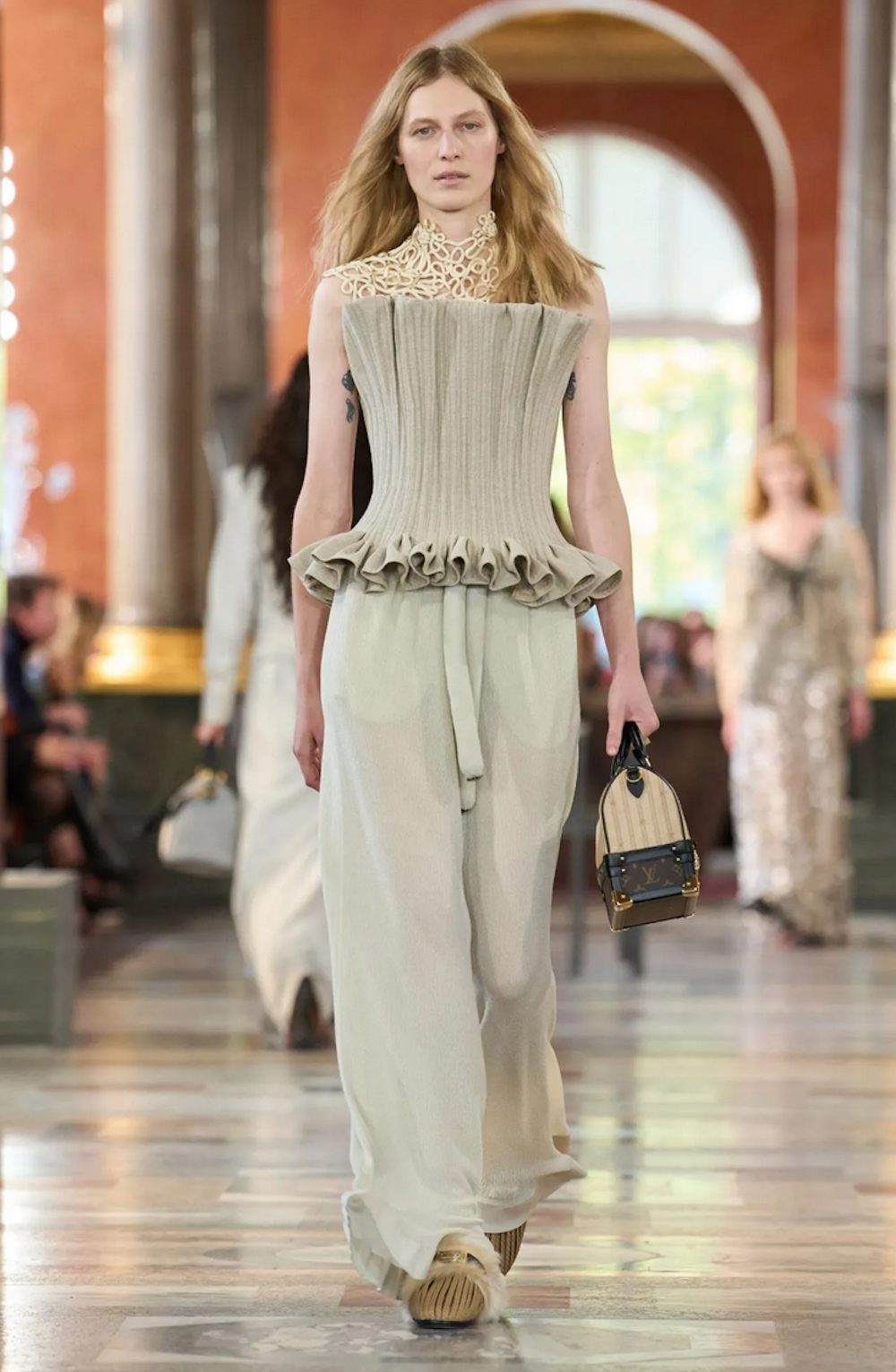 - Strukturirani kroji: tailoring ostaja trdno ukoreninjen, vendar podan na nov način, skoraj kiparsko.