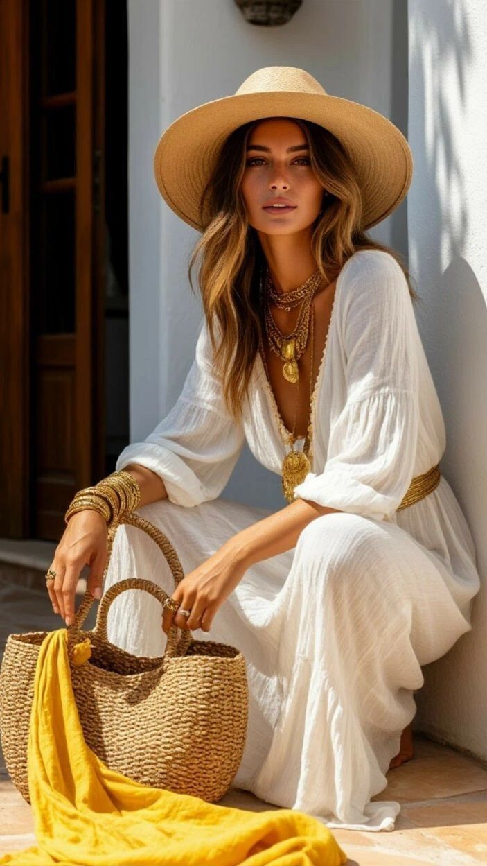 Čeprav je poleti manj slojev, to ne pomeni manj stila. Prav nasprotno – dodatki postanejo ključni. Rafija torbice, usnjeni sandali z minimalnimi paščki, slamniki širokega roba, očala v retro stilu, in seveda – nakit iz školjk, biserov, stekla ali keramike. Vse, kar izgleda, kot da prihaja s potovanja – je v trendu.