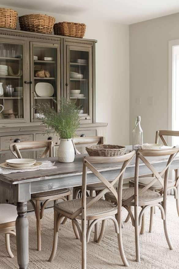 Če imate dolgo jedilno mizo, izberite dva posebna stola z naslonjali za roke za čelni strani mize — videz bo bolj prefinjen.