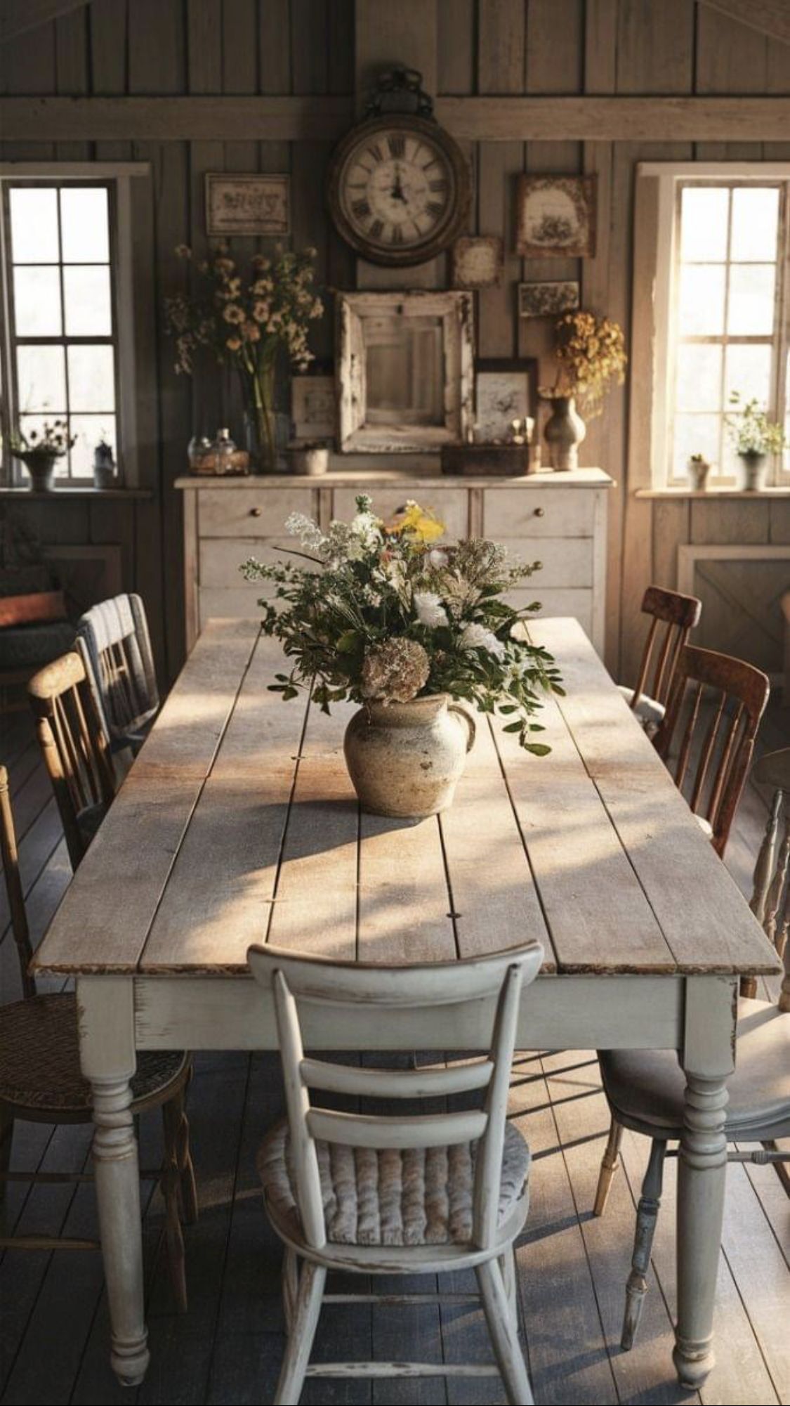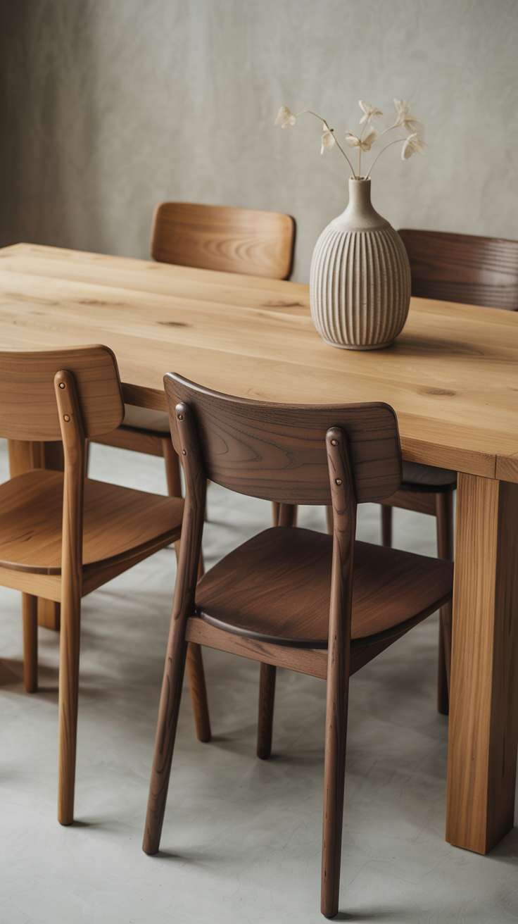 Če imate temno jedilno mizo, kombinirajte svetlejše stole — in obratno. Kontrast vedno deluje sveže in elegantno.