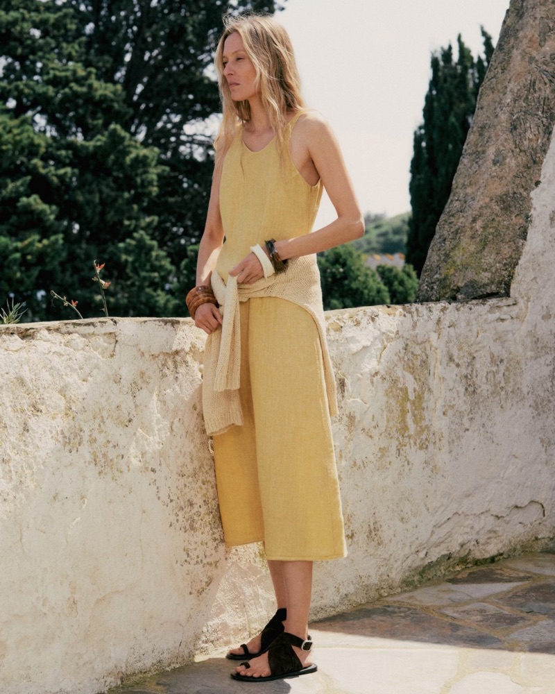 Kaj kmalu pa vsega zgoraj naštetega preprosto ne bomo več potrebovale in dovolj bodo že pravi sandali in pletena torba za piko na i. Lanene obleke so tokrat skoraj vedno krojene z dodatki žepov, kar prinaša lahkotnejši, vsekakor bolj casual look. Najlepše so letos v masleno rumeni, beli in žajbljevo ali kaki zeleni, modne pa celo v črni in rjavi.