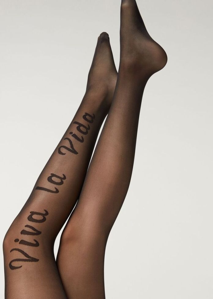 Zanimivo, ker ostaja podlaga temna, največkrat črna in barvnih nogavic je veliko manj ali so v tej sezoni celo izginile. Sicer je res, da so barvne nogavice veliko bolj zahtevne in manj nosljive od črnih, zato se prav na črni podlagi pojavljajo vzorci, ki jih že dobro poznamo: pike, zvezde, črte, mreže. Od vseh so nedvomno najbolj originalne tiste s citati, ki so zdaj pravi hit; podobno kot pri majicah, ki se pojavljajo z velikimi ali manjšim napisi, je ta logomania prešla na področje nogavic. Zanimivo in drugačno, a prav gotovo ne za vsako.