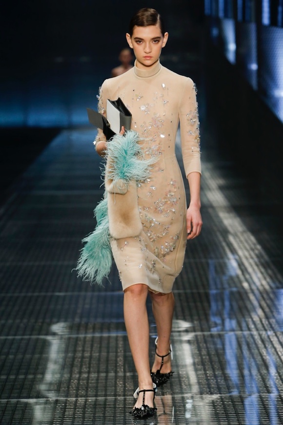 Ne upam napisati, da je začela Prada, ker mi je popolnoma jasno, da so začeli drugi pred njo, a Prada je prav gotovo poskrbela, da si bomo v poletni sezoni omislile perje. Nežno, romantično, v slogu 20. let in Velikega Gatsbyja, perje je dodatek, ki se ga vedno zelo veselim.