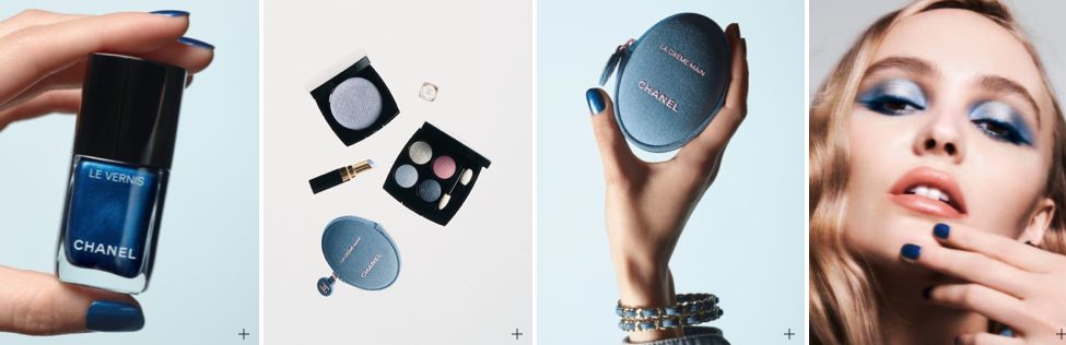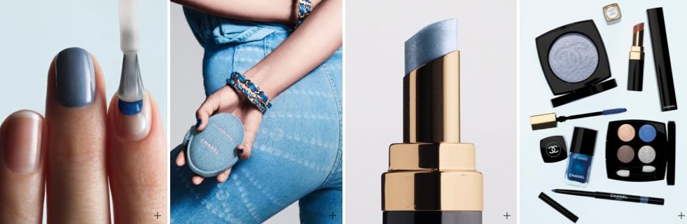 Nova Chanel Denim kolekcija je krasen primer, kako lahko barvno zgodbo prenesemo tudi v lepotni segment. Kolekcija se osredotoča na modre tone, ki pa niso povsem klasični — niso zgolj “navadna modra”, ampak nosijo globino in teksturo kot denim sam. Šminke in blush v tej paleti so hkrati intenzivni in mehki, kar omogoča izraz, ki je hkrati sodobno moden in klasično eleganten.