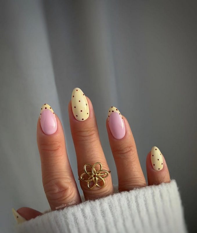 Rumena je nedvomno ena tistih barv, ki ni prav za vsako izmed nas. Naj gre za okus ali izgled, to je nekoliko zahtevnejša podoba, tudi na nohtih. Velik plus je pri slednjih ta, da gre za zelo nežne, nevpadljive odtenke rumene, kateri se večkrat spogledujejo s preostalimi, nevtralnejšimi toni. Lahko si jo privoščimo povsem samostojno, v kolikor pa nam rumena ne diši ravno najbolj, so super ljubka izbira tudi raznorazne poslikave. Slednje bodo kaj kmalu v celoti navdihnjene z veliko nočjo, kjer rumena ostaja zvezda. Privoščimo si pikice in obrobe, prikupne cvetlice, sploh marjetice in še mnogo več.