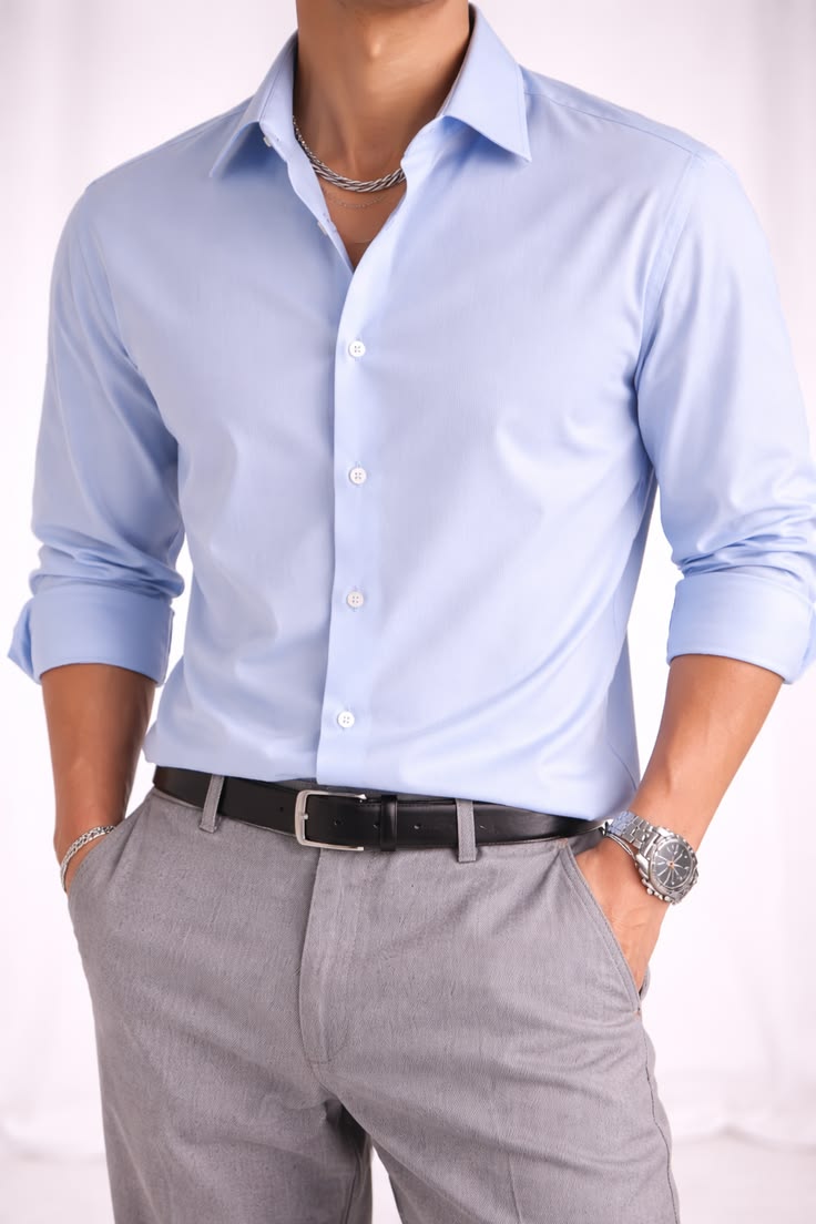 Svetlo modra srajca je pogosto celo bolj laskava kot bela, saj mehča obrazne poteze in deluje manj strogo. Idealna je za poslovno okolje, saj ohranja profesionalnost, hkrati pa vnaša subtilno toplino. Pomembno je izbrati pravi odtenek – ne preveč nasičen, ne preveč sivkast. Dobro deluje v kombinaciji s sivimi, temno modrimi ali bež oblekami.