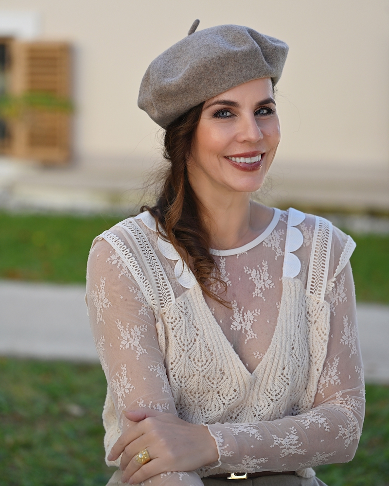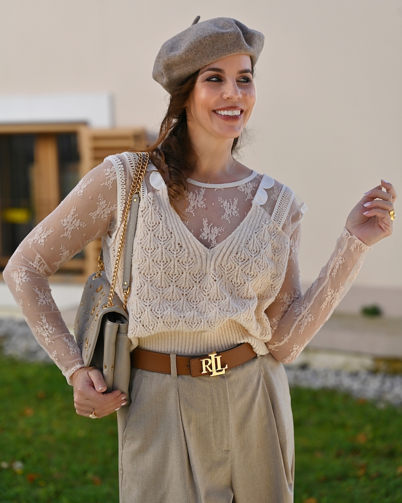 So dnevi, ko si želimo lahkotnosti, mehkobe in občutka, da smo dobro oblečeni brez pretiranega truda. Prav takrat pridejo do izraza balerinke – sinonim udobja in nežne elegance, ki se zlahka prilagodijo mestnemu tempu in dolgemu dnevu.Pleten brezrokavnik doda videzu toplino in strukturo, hkrati pa deluje sproščeno in zelo sodobno. Odlično se ujame s spodnjo čipkasto majico, tistim nepogrešljivim kosom garderobe, ki vedno reši stajling. Čipka prinese subtilno ženstvenost in mehak kontrast pletenini, ne da bi bila vsiljiva. Nevtralni toni celoto lepo povežejo v harmonično zgodbo. Bež, smetana, peščeni in nežno rjavi odtenki delujejo umirjeno, elegantno in nadvse nosljivo. Takšen stajling ni vezan na trende, temveč na občutek – občutek udobja, urejenosti in naravne elegance, ki vedno deluje.