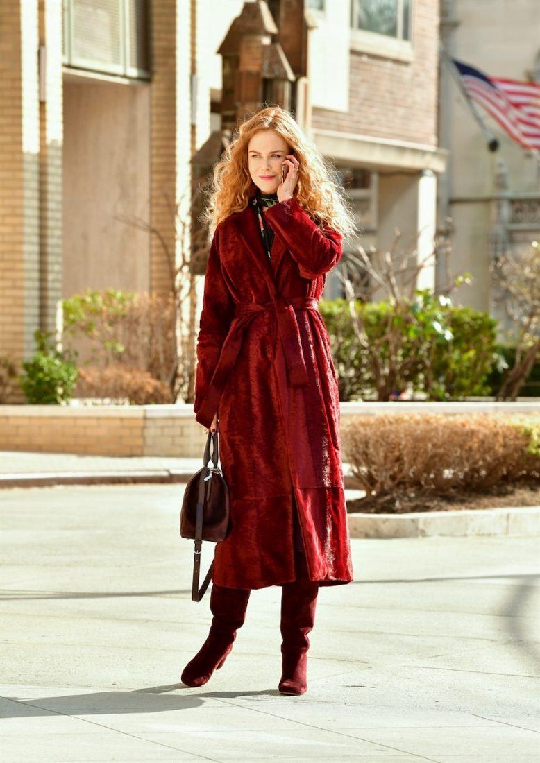 Izbira vrhnjih oblačil je povezana z estetiko in stilom serije, hkrati pa odraža razvoj glavne junakinje skozi čas. Vsak plašč, ki ga je med jesenjo in zimo nosila Nicole Kidman v čudovitem Manhattnu, je ustvaril danski kostumograf Signe Sejilund. Poigral se je s toplimi in intenzivnimi barvami, ki zelo nežno, a hkrati divje poudarjajo Nicolino lepoto.