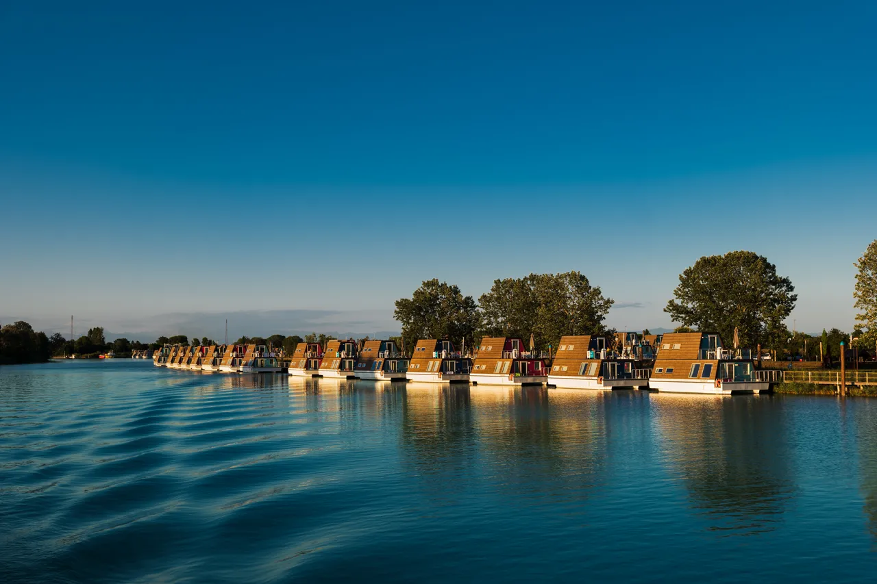 Marina Azzurra Resort je edinstven resort v Italiji, ki ponuja luksuzne hiške na vodi, zasnovane kot plavajoče hiše, in se nahaja v mestu Lignano Sabbiadoro ob reki Tagliamento.