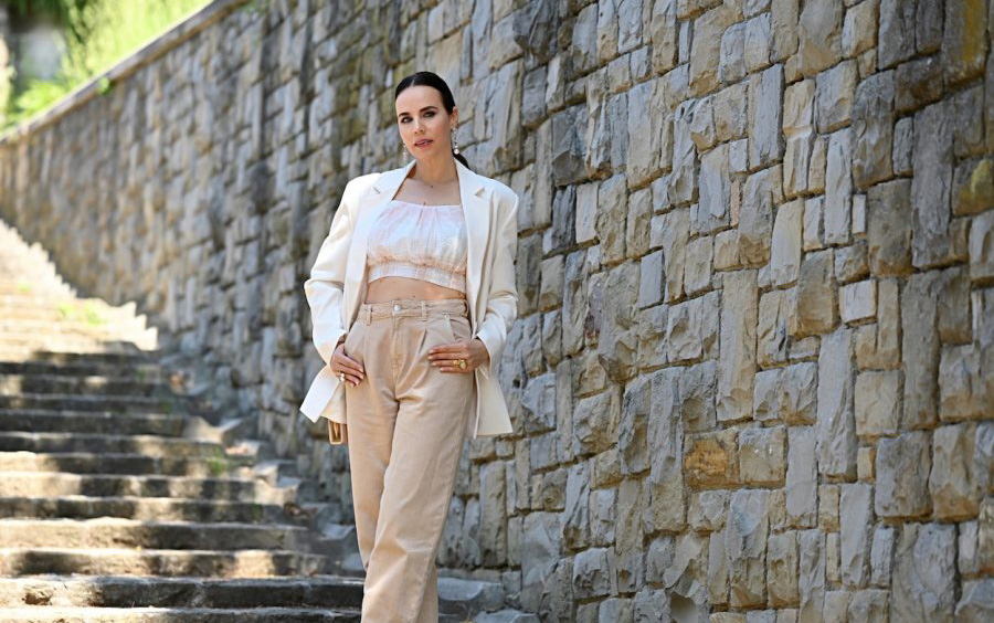 Za stajling dneva sem izbrala tako imenovani crop top, torej krajši zgornji del.