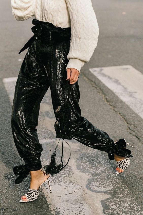 V kolikor stavimo na izredno vpadljiv, drzen novoletni look, potem posezimo kar po tovrstnem kostimu, a dovolj bodo že lesketajoče se hlače.