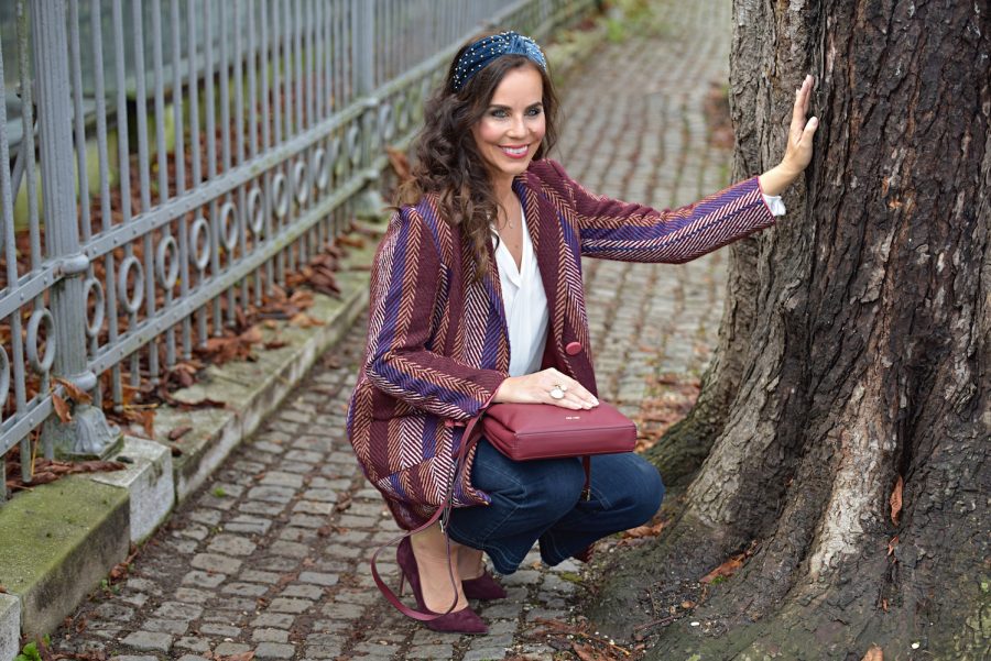 Bordo barva ima poseben čar – je globoka, umirjena in neverjetno sofisticirana. Vedno jo povezujem s hladnejšimi dnevi, ko moda postane bolj taktilna, bogata in izrazna.